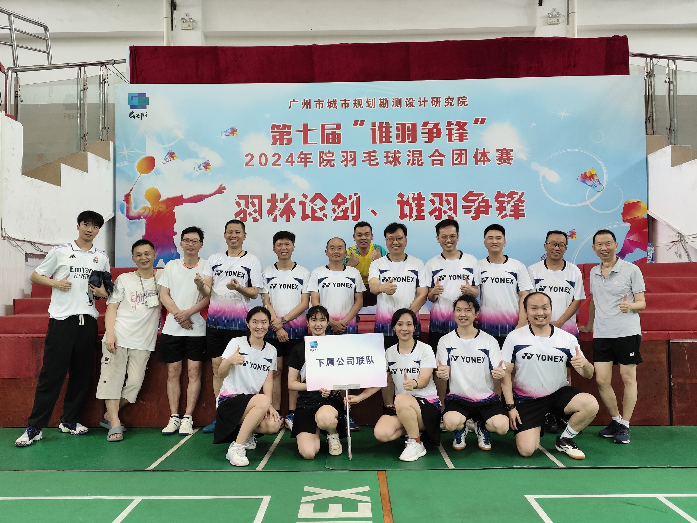 5月11日規(guī)劃院工會(huì)主辦第七屆羽毛球混合團(tuán)體賽,公司勞智聰副總經(jīng)理帶領(lǐng)羽毛球隊(duì)8名運(yùn)動(dòng)健兒,與院監(jiān)理公司、咨詢公司組成聯(lián)隊(duì)參加。