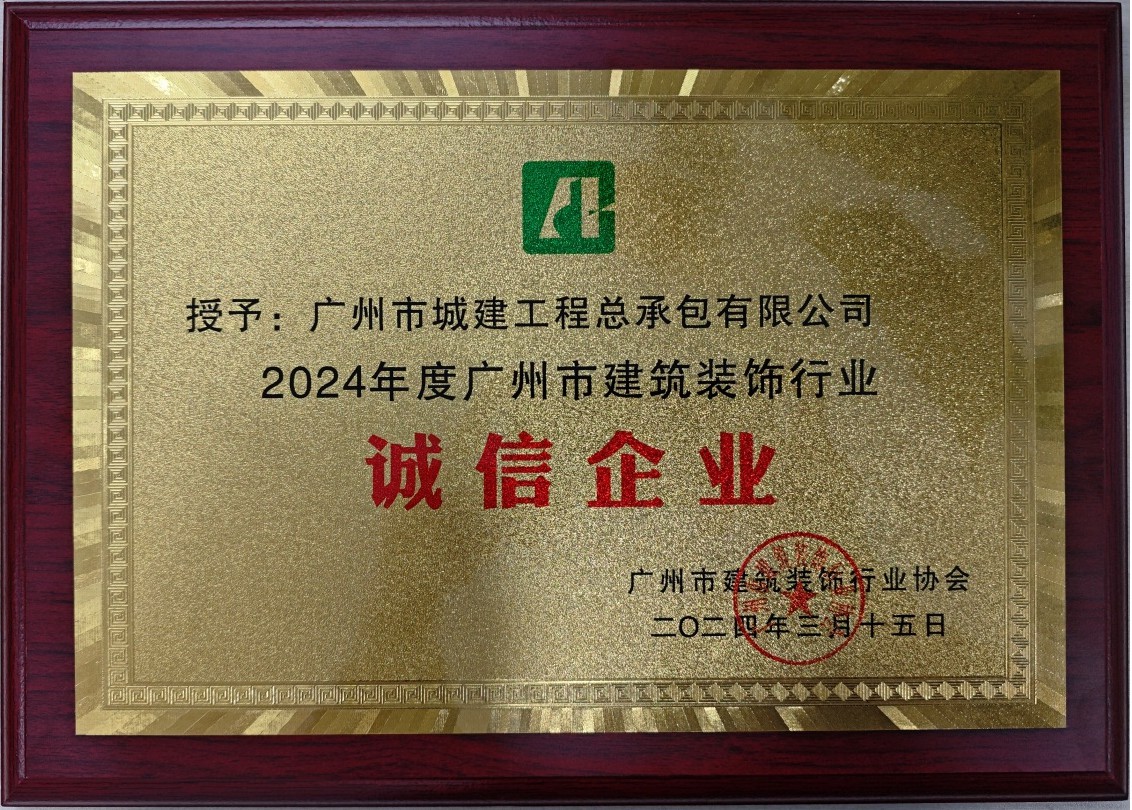公司獲評(píng)“2024年度廣州市建筑裝飾行業(yè)誠(chéng)信企業(yè)”稱號(hào)